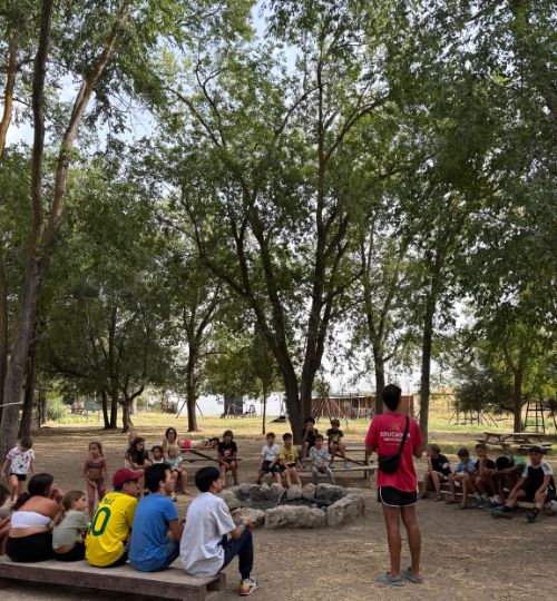 Además, el campamento se completa con piscina diaria, deporte, actividades de aventura (rocódromo, tiro con arco, laberinto…), juegos nocturnos, cuentos bajo las estrellas ✨ y alguna que otra actividad sorpresa que mantiene viva la ilusión durante toda la semana .